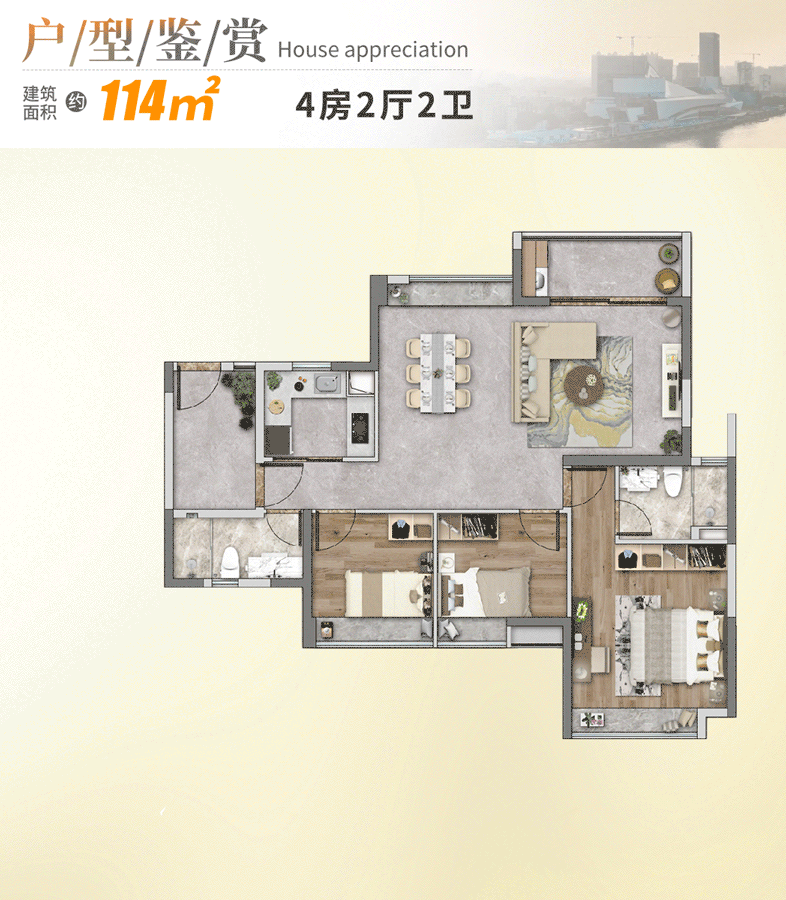 建面约133㎡天幕四房,三面单边采光,百变三阳台,既静谧亦亮堂,让三代同堂的温暖互动,自带诗意滤镜。
